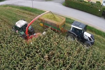 Mais häckseln. Fendt 310 Vario Fendt 716 Vario TMS + Kemper Champion 3000 Fendt 309 Vario TMS. -Franz Gosch-