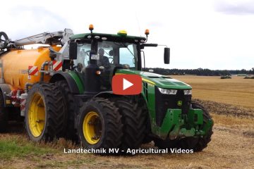 Gärreste Ausbringen 2020 – John Deere 8400R mit Veenhuis Fass und Scheibenegge. Als Zubringer sind mehrere Mercedes Benz LKW im Einsatz – Landtechnik MV – Agricultural Videos
