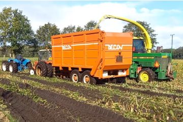 Maisernte in Boekelo im Schlamm 2024 – Die angetriebenen Achsen unter dem Decov-Wagen reichten nicht aus,