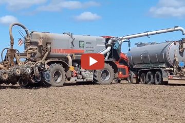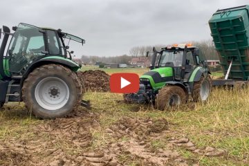 Der Deutz Fahr M600 steckt mit einer Ladung Mist fest. Deutz Fahr Agrotron 120 der rettende Engel? – Kobe