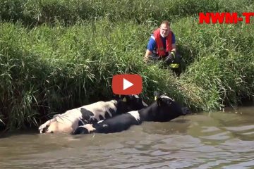 Katz und Mausspiel zwischen Kühen und Feuerwehrleuten Kühe im Kanal – 4 Kühe treiben ihr neckisches Spielchen mit der Feuerwehr -NWM-TV Nord-West-Media TV