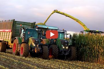2 Häckselteams des Lohnunternehmens Hartmuth Henn damit beschäftigt sind, ein großes Maissilo zu befüllen. John Deere 8500i. Fendt und John Deere Traktoren. — Kamasu666 Agri Videos