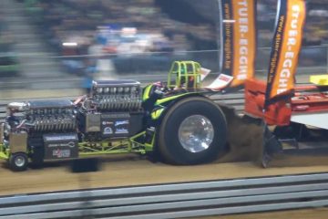 Green Monster IV & V Top Leistung im neuen Design und viele Flammen im KNURR Sound der Super Stock – Riesa 2017 Indoor Pulling !