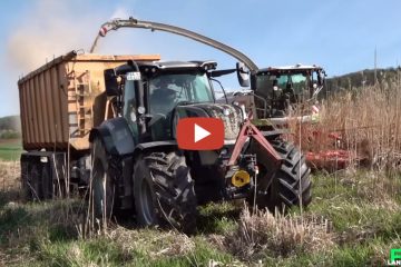 Landtechnik FHD — Miscanthus Ernte 2024. Gehäckselt wurde mit einem Claas Jaguar 970 (40000). Abgefahren wurde mit New Holland T7 270, Massey Ferguson 6180, John Deere 6145R und Fendt 311 Vario.