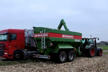 Landmaschinen und Fahrzeuge! — Letzter Körnermais 2024 in Kleve, NRW, Germany im November 2024. Claas Lexion 7400, Fendt 716 – Bergmann GTW 300 und DAF LKW.