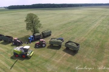 Agrarservice Rügen bei der Ganzpflanzensilage mit einem Claas Jaguar 990 TT und Claas 6 Meter Direct Disc, für den Transport sind verschiedene Fendt Traktoren und ein Scania LKW im Einsatz. Ein weiterer Class Jaguar 990 als Radversion ist auch kurz zu sehen. Landtechnik MV – Agricultural Videos