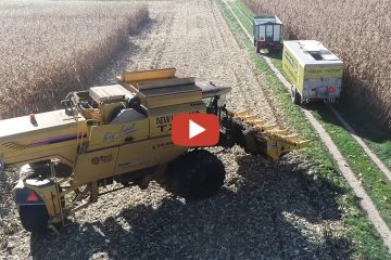 Burri Maschinenbetrieb mit seinem 3 Rad Mähdrescher TX 65 Big Foot beim Körnermaisdreschen. — feruontour