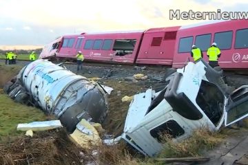 Achtzehn nach Zugunglück mit einem Milchwagen verletzt in Winsum.