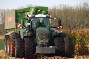 Körnermais dreschen mit einem John Deere T670i mit Geringhoff Mais Star Horizen, für die Bunkerleerung ist ein Fendt 933 auf Zwillingen mit Bergmann GTW 330. Für den Abtransport wird dann auf einen DAF LKW ungeladen. Landtechnik MV – Agricultural Videos