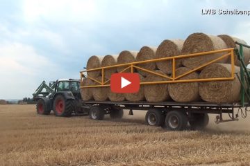 OeserPictures – Rundballen pressen mit einem McHale Vision Vario vom Landwirtschaftsbetrieb Falk Scheibenpflug GbR. Ein Fendt Vario 828 (287 PS) zog die Presse. Der Abtransport erfolgte mit einem Fendt Vario 820 (205 PS) und einen speziellen Rundballenhänger.