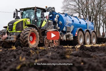Gülle fahren und ausbringen auf Ackerland in Niedersachsen, durch Lohnunternehmen Markus Holtgers. • Claas Axion 960 Terra Trac mit Kumm KTR 28 Güllefass + 6 Meter Agroland Scheibenegge — Agriculture by Hans.
