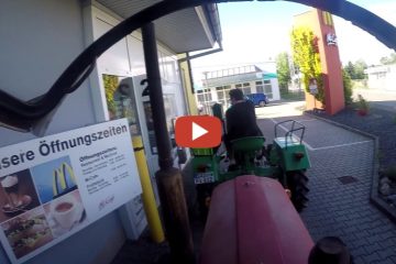 Ein Traktor mit Tieflader wollte abbremsen, klappte dann aber zusammen und kam neben der Straße zum Stehen. — Nielshth