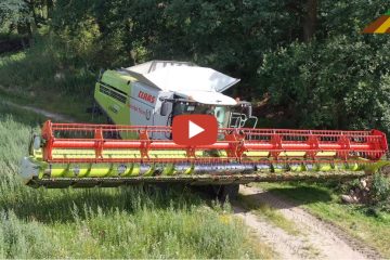 AgrarBlick 2020 – Lohnunternehmen Jürgen Rüter- Getreideernte mit einem Claas Lexion 780 Mähdrescher mit 12 m breitem Schneidwerk. Fendt mit Überladewagen