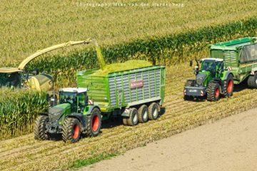 Landbouwpowers Landwirtschaftsvideos – „Old Skool“-Maisernte- Feldhäcksler Hesston 7720. Der zweite Häcksler ist ein Deutz Fahr DX 160 mit dem vierreihigen Kemper Champion 3000 Häcksler. Verschiedene Traktoren.