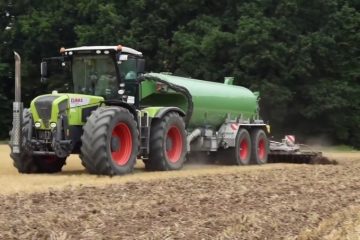 Gülleinjektion per Scheibenegge an einen Kotte PTLX mit einem Claas Xerion. -Hageböke Lohnunternehmen-