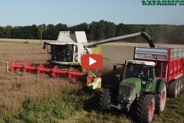Landtechnik MV – Agricultural Videos –Rapsernte mit zwei Claas Lexion 8900, jeweils mit 13.80 Convio Schneidwerk, für den Transport sind verschiedne Fendt Traktoren im Einsatz.