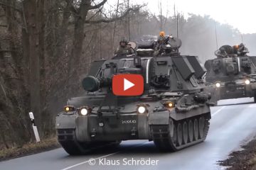 Konvoi mit AS 90 Self Propelled Howitzer — Straßenmarsch britischer Artillerie mit AS 90 Self Propelled Howitzer 155 mm bei Sennelager. — Militär- und Landtechnik Klaus Schröder