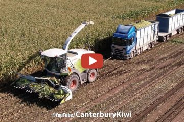 Maishäckseln 2023 in Canterbury Neuseeland mit 2X Claas Jaguar 960 vom Lohnunternehmen Jackson & Holmes. – Canterbury-Kiwi