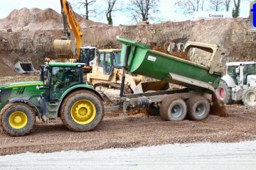 John Deere Tractor w. Half-Pipe Tipper Trailer @ Work, Erdbau, Waiblingen, 23.02.2017. Benjamin Beytekin