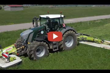 Mähen mit einem neuen Fendt 828 Tannengrün und Claas Disco 1100