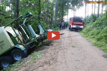 Ein Traktor, samt einer Rundballenpresse ist abgestürzt, wobei sich der Traktor überschlagen hat. Feuerwehr.media