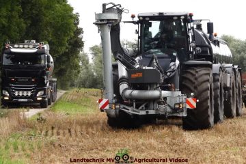 Gülle ausbringen mit einem Claas Xerion Trac VC mit Kaweco Faß und angebauter Scheibenegge, sowie einem Fendt 1050 mit Kaweco Double twin Shift und Scheibenegge. Für den Nachschub sind verschiedene LKW von Daf und Scania im Einsatz, ein Valtra mit Faßwagen dient als Ackertaxi. Landtechnik MV – Agricultural Videos