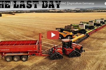 Agriculture Germanyy — Gedroschen wurde Weizen mit 5 gigantischen Mähdreschern! Ein Case Quadtrac war was Zugpferd für den Annaburger Umladewagen!
