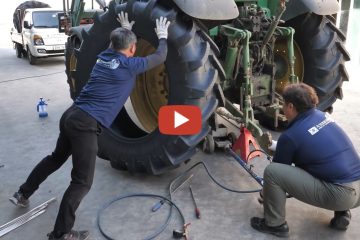 Koreanischer Topper wechselt die Reifen eines John Deere Traktors……… Mega Process