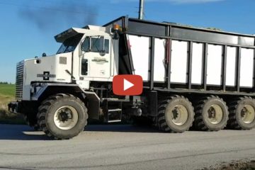 Ein Oshkosh-Lastwagen vom US-Militär nachgerüstet in einen Silagetransporter.