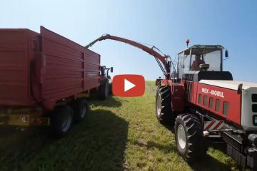 Selbstfahrer Steyr Mex Mobil häckselt Gras für Ballenpresse Orkel von Lohnunternehmer T – Schaller AG — feruontour