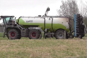 Claas Xerion 3300 Saddle Trac mit Kaweco Aufsattel – Güllefass mit 26.m3 bei der Gärresteausbringung 2016