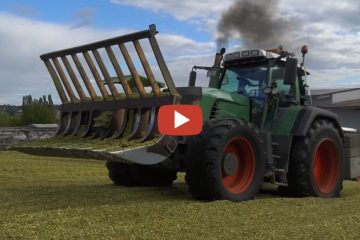 Wo Rauch ist, ist auch Feuer — Lohnunternehmen Schweizer beim Silo Schieben 2022. Zum Einsatz kam ein Fendt 930 Vario TMS mit einer umgebauten Baggerschaufel zur Silogabel — Roman Schmitz