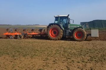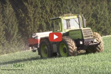 Dünger im Winterweizen: Ein MB Trac 1300 im Einsatz mit einem Rauch Düngerstreuer. Transport des Düngers war ein Unimog U1700 — Agrarforst