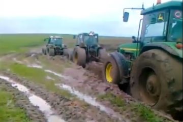John Deere Traktor steckt fest