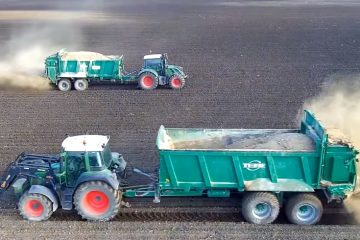 Fendt 415 + Tebbe HS 240 Fendt 512 + Tebbe HS 180 beim Karbokalk streuen. -Thomas Medwenitsch-