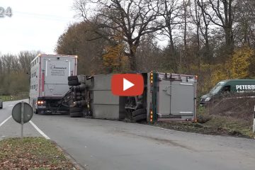 – VN24 – Schweinetransport Anhänger kippt nach Defekt – Bergung mit Kran Auf der Dolberger Straße in Lippetal (Landkreis Soest)