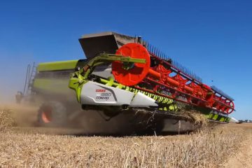 Getreideernte mit einem Fendt 9T, einem Claas Lexion 770 und einem John Deere X9 1000, ein Fendt mit Hawe Überladewagen ist für die Bunkerleerung zuständig. Für den Transport sind verschiedene Fendt Traktoren mit Krampe Kippern im Einsatz. Landtechnik MV – Agricultural Videos