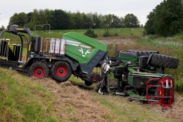 Unfall mit Traktor mit Rundballenpresse