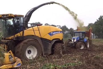 Niederlande.. Maisernte im Schlamm 2020 mit einem John Deere 8500i und New Holland & John Deere Traktoren. – Mike van den Hardenberg
