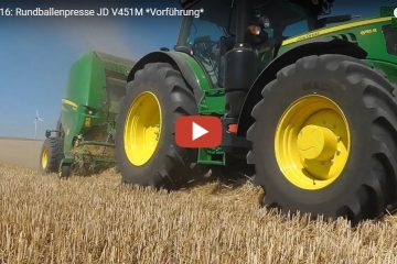 Michel Deere vlog – LVA zeigt uns die neue John Deere V451M Rundballenpresse zusammen mit einem 6155R AutoPowr im Weizenstroh.