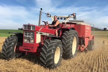 IHC 1246A und Welger D 6050 — Weizen Stroh pressen im Riedbach, durch das Lohnunternehmen Thomet — David Bigler