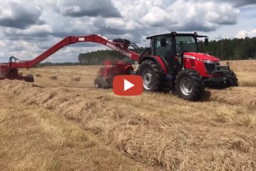 Massey Ferguson 5710 zieht Doppelballenpressen