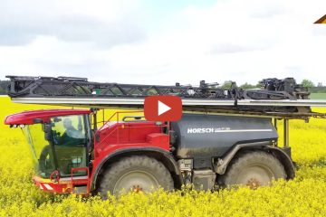 Mit einer HORSCH Feldspritze wird eine Fungizidbehandlung im blühenden Raps durchgeführt. Wärmebildkamera im Einsatz — AgrarBlick