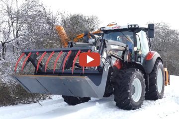 2021 Hecke schneiden – Lohnunternehmen Lukas Hasenfratz. NEU Steyr Expert 4100 CVT – Zuerst schneidet er 2-3 Bahnen und anschließend schiebt er es auf einen Haufen. – AgrarVideoBW