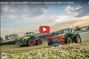 Agrarservice Rügen 2023 bei der Ganzpflanzensilage mit einem Claas Jaguar 990 TT und Direct Disc 600, für den Transport sind verschiedene Fendt, Claas und John Deere Traktoren, sowie LKW von Scania im Einsatz.. Landtechnik MV / Farm Technology MV