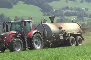Roter Fendt 724 Vario am Gülle fahren in den Alpen. -Roman Schmitz-