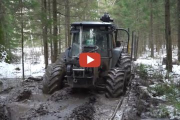 Valtra Forsttraktor, John Deere 1110D und Timberjack 810B bei nassen Bedingungen – Arunas