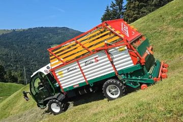 Die Hecklader der -S-Baureihe von Lüönd verfügen über ein Dosier-Pickup, mit dem das Futter schnell entladen werden kann. — Landtechnik Schweiz