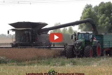 *2022 Rapsernte mit zwei Fendt 10T und einem Fendt 9T, jeweils mit einem MacDon Schneidwerk. Für den Transport sind verschiedene Fendt und John Deere Traktoren – Landtechnik MV – Agricultural Videos