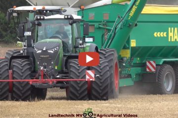 Kalk streuen mit Fendt 936 und Bredal K 165 Streuer, beladen wird das Gespann mit einem Liebherr 550 Xpower Radlader. – Landtechnik MV – Agricultural Videos